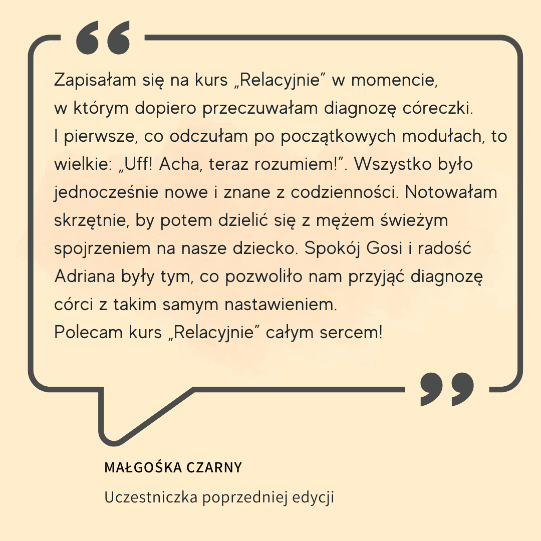 Opinie Uczestników poprzedniego kursu Adriana i Gosi „Relacyjnie", którego trzy edycje odbyły się w 2024, 2023 i 2022 roku: