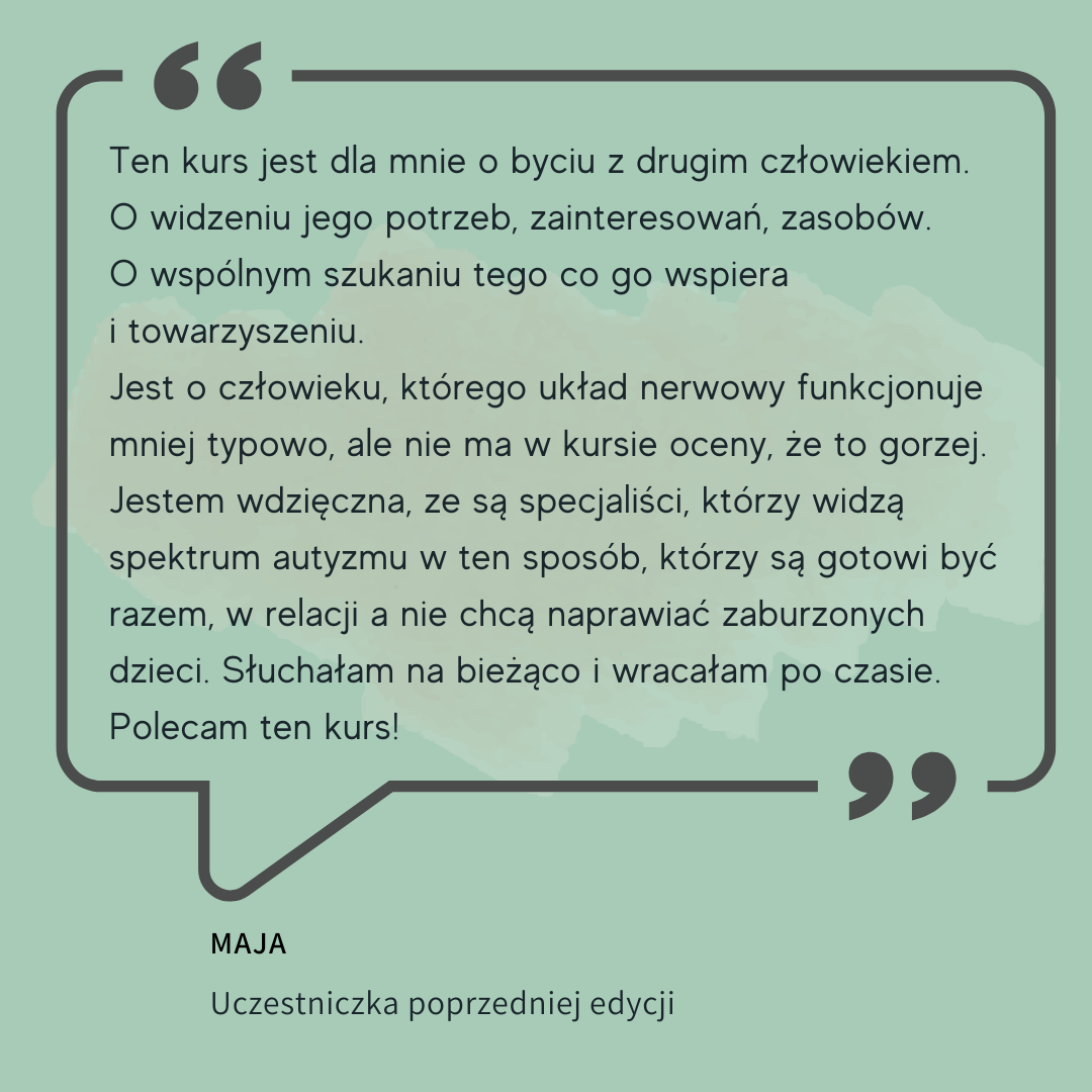 Jeśli pracujesz jako specjalista, logopeda, nauczyciel, psycholog, wolontariusz, opiekun lub terapeuta? Zapraszamy do udziału w rozszerzonej wersji kursu, która będzie zawierać dodatkowe elementy dedykowane profesjonalistom.